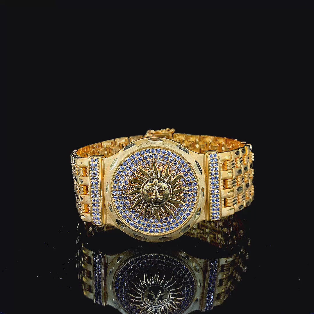 Luxurious Gold Plated Bracelet with Radiant Surya Medallion and Diamond Accents