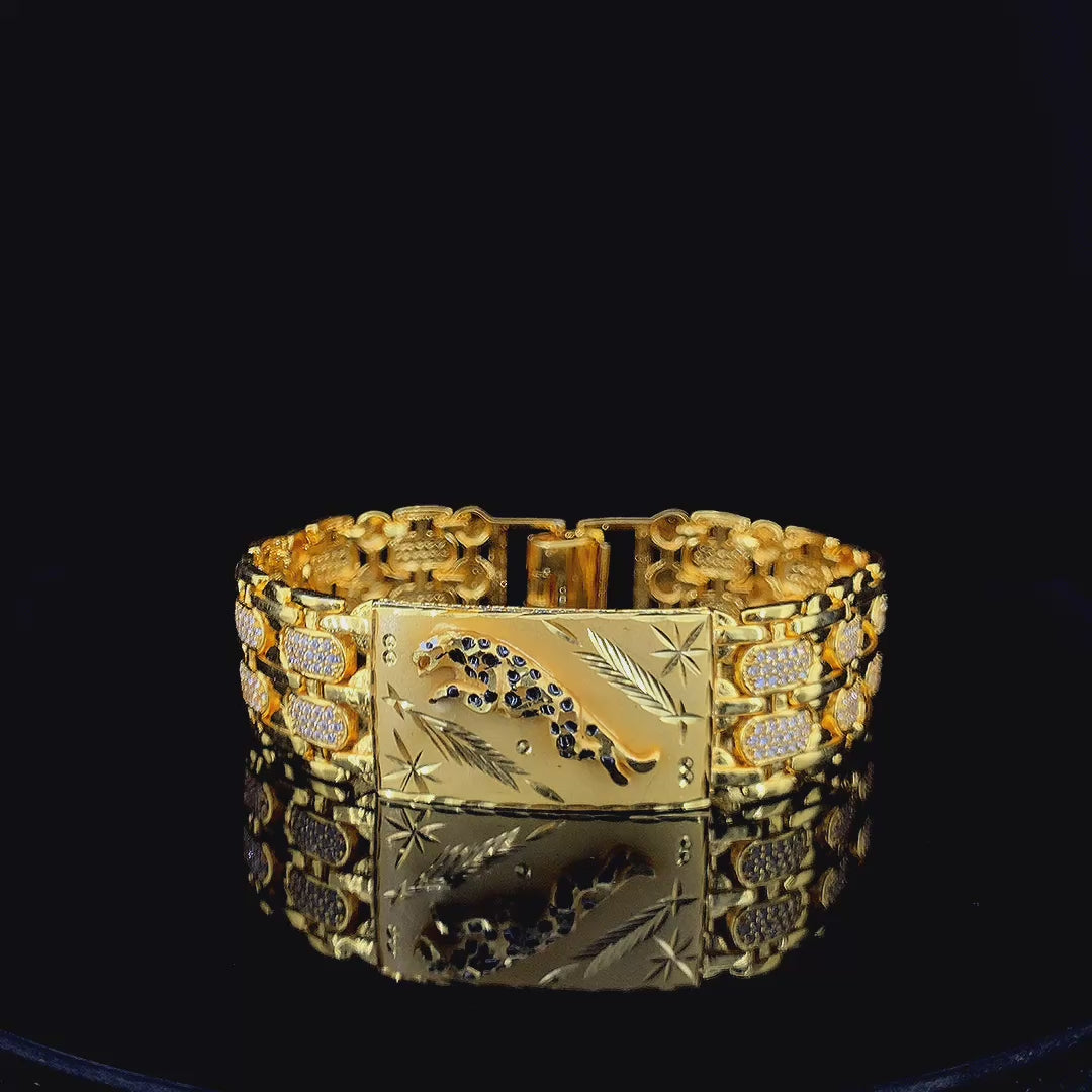 Majestic Lion Head Gold Plated Bracelet with Diamond-Studded Links – Royal Design