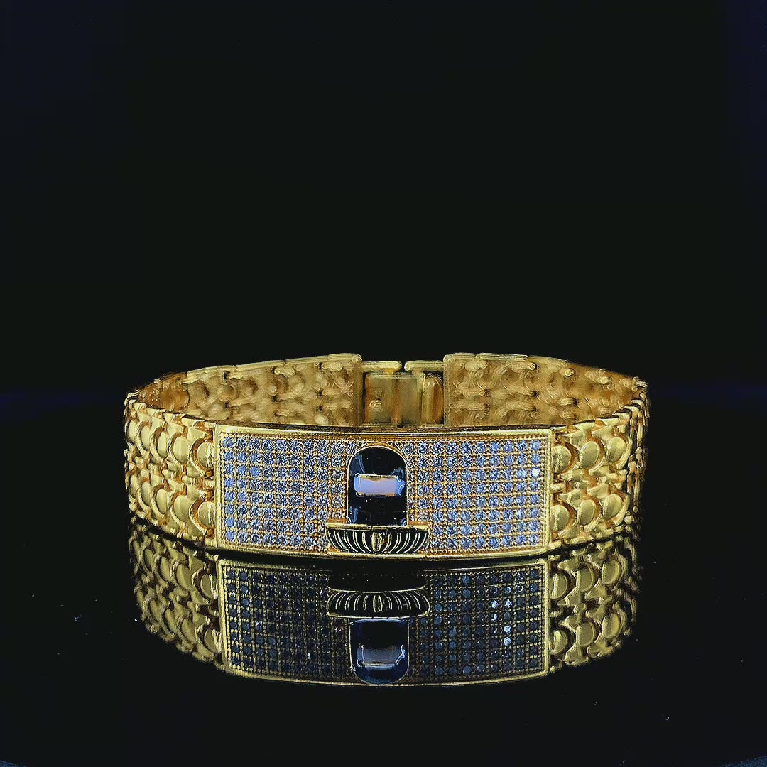 Brass Direct Gold A.D. Stone Designer Gents Bracelet - (Textured Pattern with Stone Clasp)