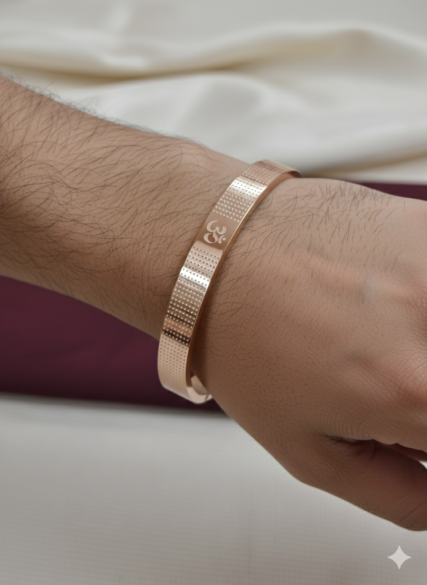 A stylish and uniquely designed men's kada (bracelet) featuring a combination of steel and long life colour free size