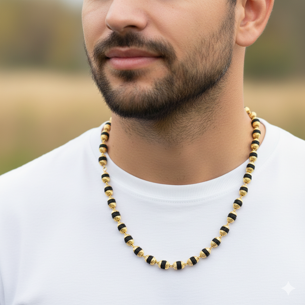 This finely crafted 6mm Rudraksha mala features high-quality finishing with gold-toned accents, offering a blend of spirituality and elegance. Ideal for meditation, daily wear, or as a meaningful gift.